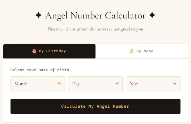 Add all the digits of your birth date together until you reach a single digit — that is your personal angel number. You can also use our free Angel Number Calculator at the top of this page.